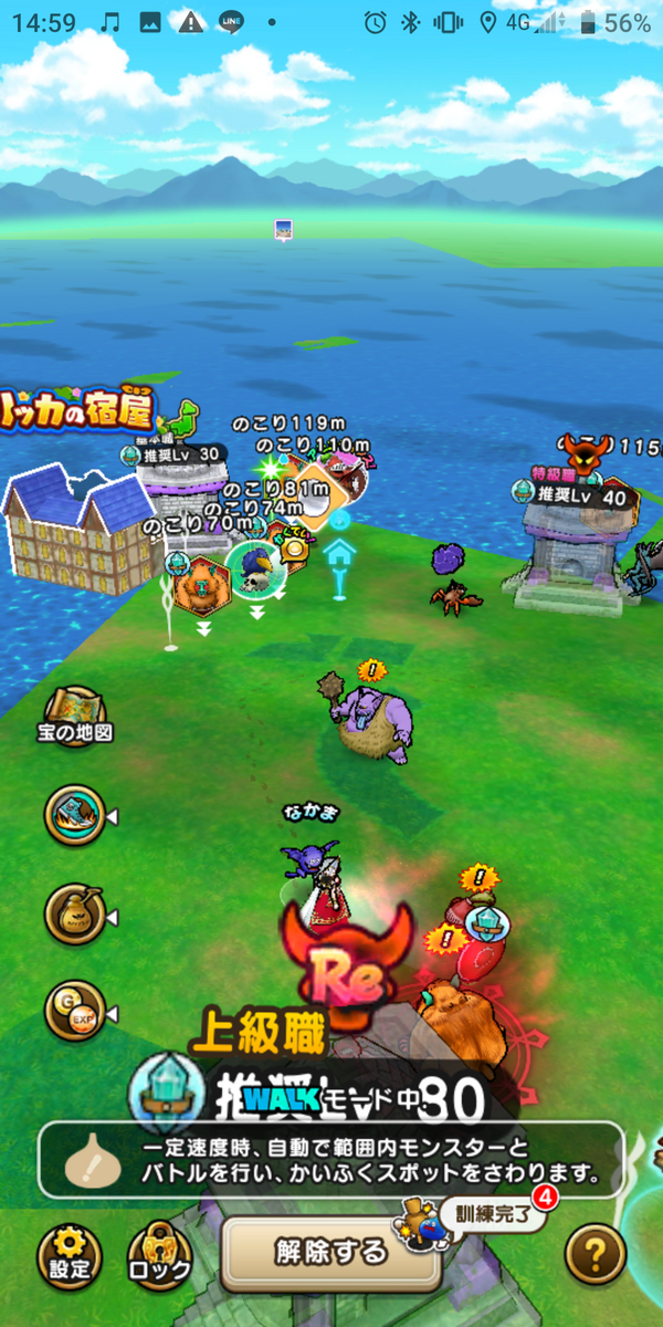 さて、問題のドラクエウォークについては意外な結果だった。1周1時間もかからず回れる島に、祠が3つ、強敵モンスターのシンボルや心確定スポット、メガモンスターもポップしているし、なんとリッカの宿屋まである。