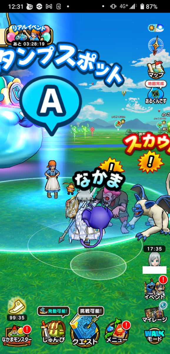 在来線で隣に座った家族連れと、すれ違ったカップルが、どちらもドラクエウォーカーだったのだ。「お前、大阪に続いてまた他人のスマホを覗いたのか」と言われそうだけど、今回は悪くないと一応主張したい。どちらの方も、何故かスマホの表示面をこちらに向けて行動していたので、見たくなくても画面が目に入ってきたのだ。といっても、一人はウォークモードの省電力画面(スマホを逆さにすると表示される、黒字に小さなスライムのアイコン)だったが。この日のこの時間に大宮駅のホームにいるということは、ほぼイベント参加者だろう。